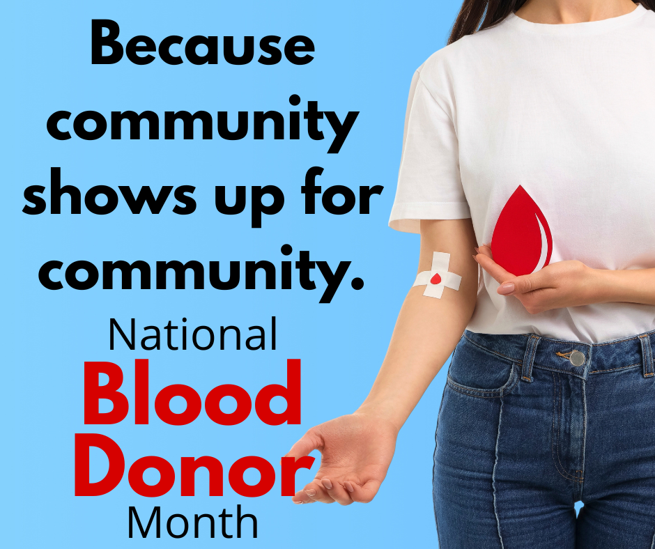 During National Blood Donor Month and beyond, we encourage community members who are eligible to participate in upcoming blood drives. Every donation can help save up to three lives.